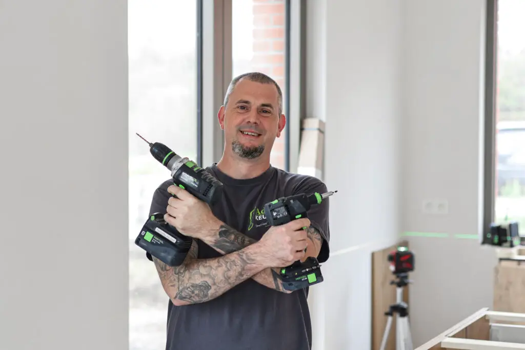 Achter elke afgewerkte keuken staat een vast team van vakmensen. Geen freelancers of losse krachten, maar vier plaatsers, een bediende en twee zaakvoerders die elkaar goed kennen. De sfeer is familiaal, de werkwijze zelfstandig.
